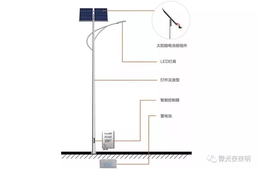 市場上并不是沒有好的產品,我們先來看下太陽能路燈的構成。
